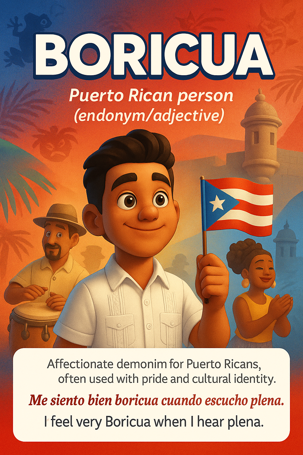 This 160+ page digital eBook breaks down 150 of the most culturally rich words and expressions from Puerto Rico, the Dominican Republic, and Cuba, each with:
